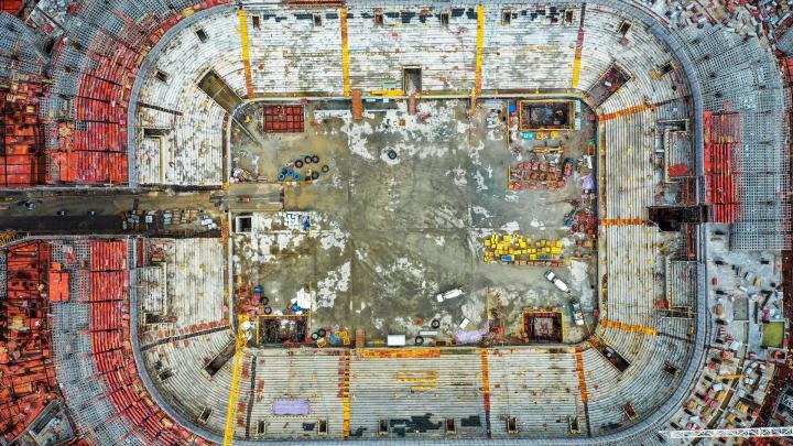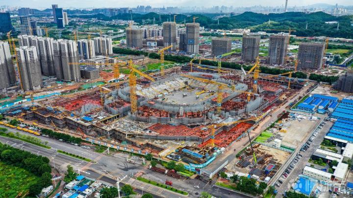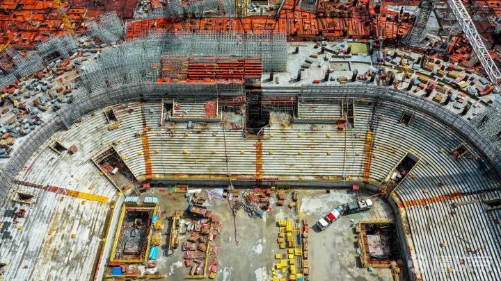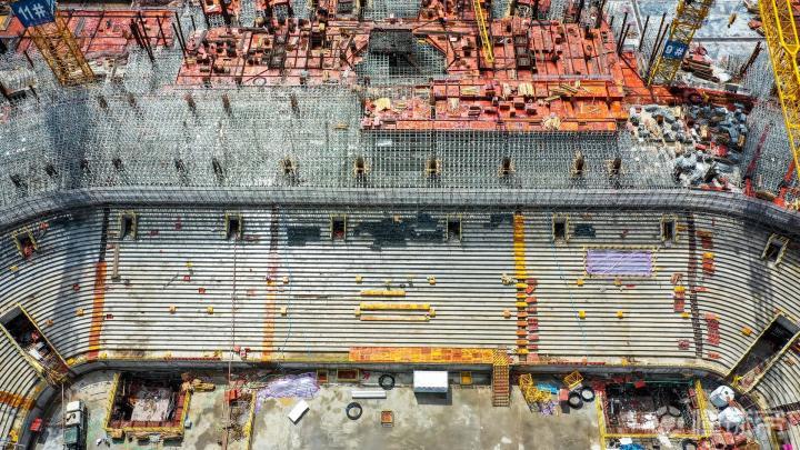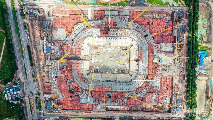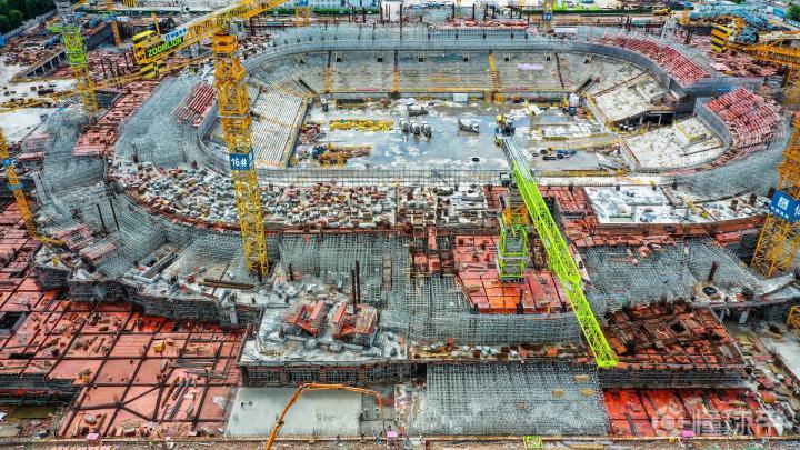 又到了广州恒大足球场施工进(2021.07.08)更新的时候:这周发现建设进度又提速,上帝视角已显现球场地面轮廓 ——站在水平面望过去,明显感到球场比上一次看高了一些,相信是已经开始健第二层的缘故;通过航拍看到地面第三层已经开始做底板,第二圈座位南北看台也已经在做模板了,而且中心球场的吊机已经拆除,还没做底板的地方同样在加快进度,看来尽管天气炎热,这依然是效率极高的一周啊! 除此之外,通过一些细节图,大家还能看到一圈的VIP,VVIP包房、包括中心球场的汽车通道都已显现。还有更厉害的是,通过上帝视角看球场,已经可以清晰看到球场的地面基本轮廓了,感觉很雄伟壮观啊[棒棒哒]继续加快进度吧,真想快点看到它建成的模样…… 【本文所有航拍图由合作方冰蓝八妾提供】