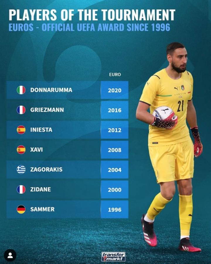 历届欧洲杯MVP一览:格列兹曼、齐达内、哈白在列桀骜丶野心家 @懂球帝2021-07-12 21:582020欧洲杯落下帷幕,多纳鲁马当选了赛事最佳球员,对此《德国转会市场》盘点了欧洲杯的历届MVP。欧洲杯历届最佳球员一览(自1996年起)2020 多纳鲁马 意大利2016 格列兹曼 法国2012 伊涅斯塔 西班牙2008 哈维 西班牙2004 扎戈拉基斯 希腊2000 齐达内 法国1996 萨默尔 德国展开更多