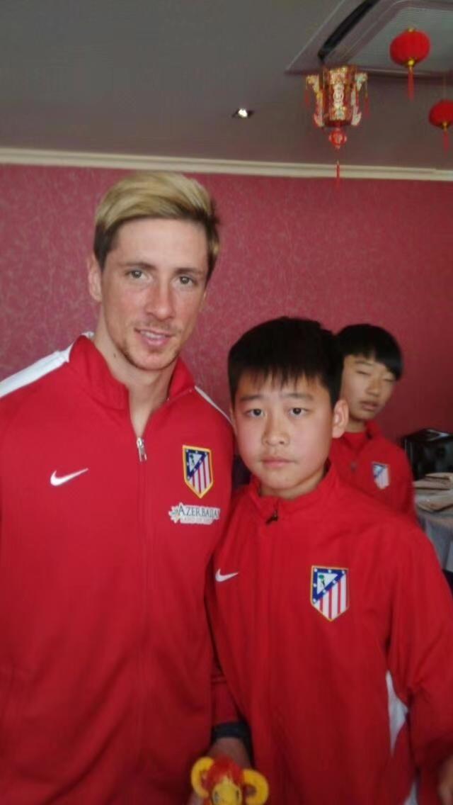 考虑到孩子们的思乡之情,每次春节期间,马竞俱乐部都会安排一线队球星与孩子们共进晚餐。王浩然特别喜欢托雷斯,就与自己的偶像主动合影。