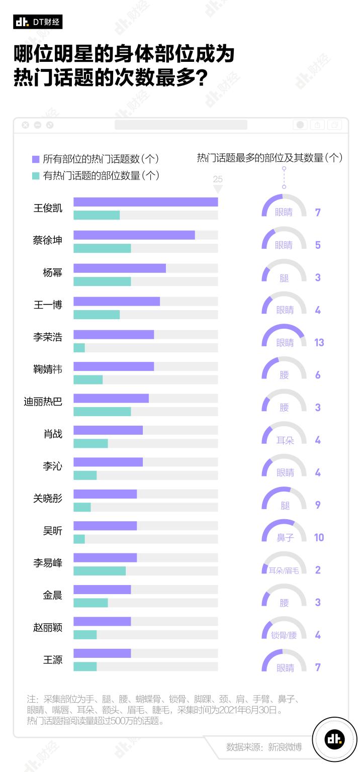 看腻了#明星+身体部位#的热搜,DT君决定认真研究下明星的身体部位到底有多能上热搜:谁靠身体部位上热搜次数最多?哪个部位最容易上热搜?谁的哪里最火?