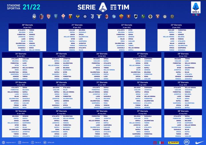 21/22赛季意甲联赛完整赛程