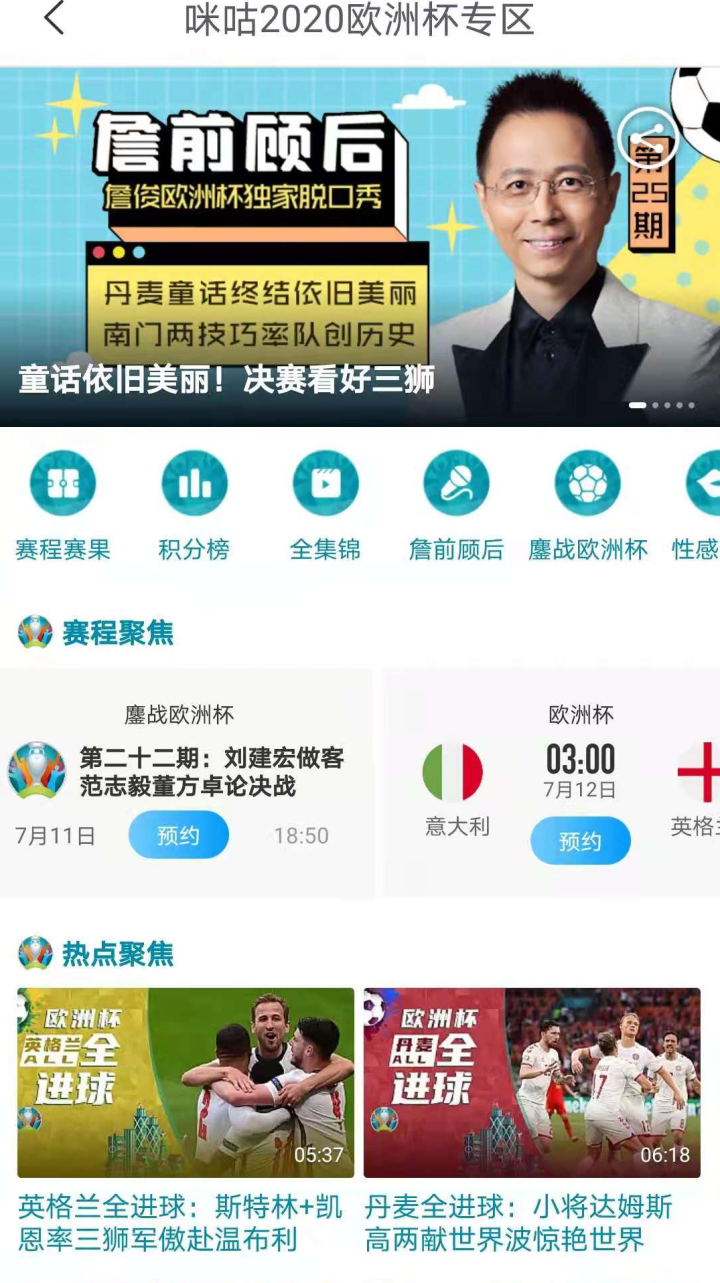 在大赛开始前,作为中央广播电视总台2020欧洲杯赛事转播顶级合作伙伴的中国移动咪咕(以下简称「咪咕」),就搭建起了「地表最强解说天团」,在上述的詹俊、张路和黄健翔等几位名嘴之外,还有刘建宏、徐阳、董路、李欣、娄一晨、刘越、颜强等人,轮番做客演播室。这样的排兵布阵,体现着咪咕运营升级的决心与方向。