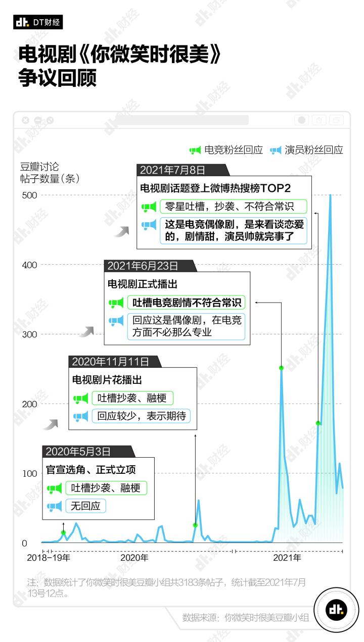 比如剧中的选手们用电脑打着一款手机游戏,男二为了讨好女主愿意打假赛,选手开团之前要倒数“321”……这些细节,无异于火上浇油。于是电竞粉丝对《你微笑时很美》的炮轰火力再一次加强。