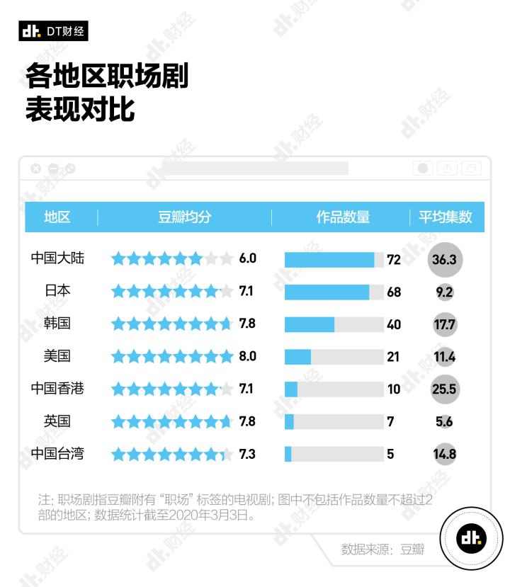 但仅仅打着圈层旗号,却只是在堆积术语,难免被人撕掉遮羞布。我们在2020年的一次统计中发现,中国的职场剧也正面临着作品数量多、单部集数多、整体质量差的窘境。