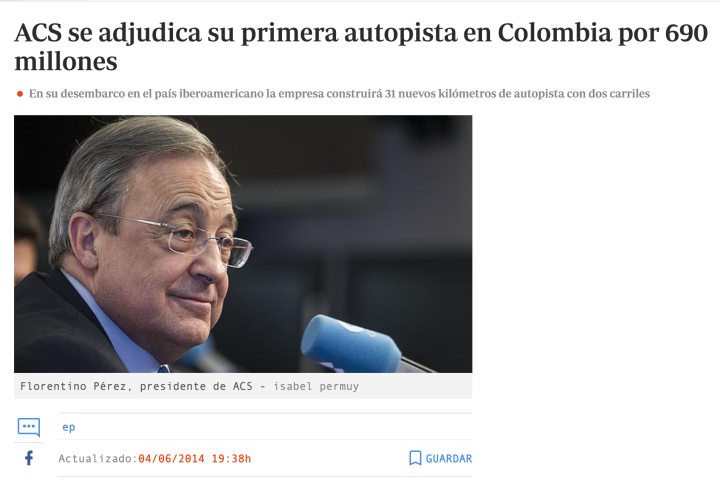 [图]注意文章发布的时间,2014年6月;同年J罗这个时候便接近完成了从摩纳哥的天价转会,伴随其一起来到皇家马德里除了一张天价合同和无数批评声,还有弗洛伦蒂诺通过这7500万的俱乐部款项换来的哥伦比亚政府价值接近7亿美元的天价高速建设合同
