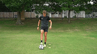 练习二和练习一的模式是一样的,但这次我们用脚外侧把球推过标志盘之间的空当,也会穿过最后标志盘的后面。