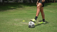 在练习六中,我们再次从侧边开始,这次我们要用脚外侧推球练习。