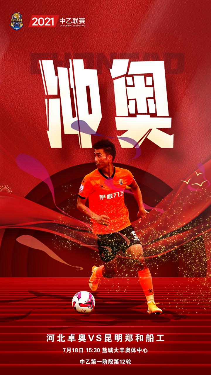 2021中乙联赛第一阶段第12轮比赛将于明天继续展开角逐,昆明郑和船工本周日在盐城大丰奥体中心对阵河北卓奥。