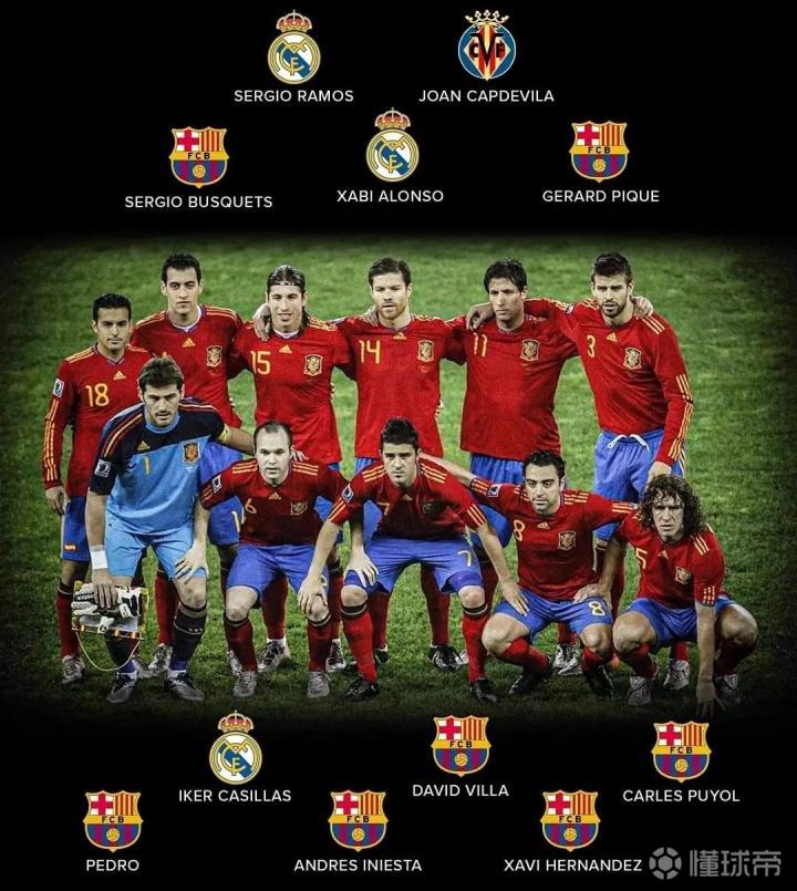 2010年的西班牙世界杯阵容:前锋:比利亚(巴萨...Verdy足球回忆 @懂球帝2021-07-17 18:362010年的西班牙世界杯阵容: 前锋:比利亚(巴萨)、佩德罗(巴萨)、 中场:伊涅斯塔(巴萨)、哈维(巴萨)、阿隆索(皇马)、布斯克茨(巴萨) 后卫:皮克(巴萨)、普约尔(巴萨)、拉莫斯(皇马)、卡普德维拉(比利亚雷亚尔) 门将:卡西利亚斯(皇马) 那一年夺得世界杯的不是西班牙,而是巴萨...展开更多