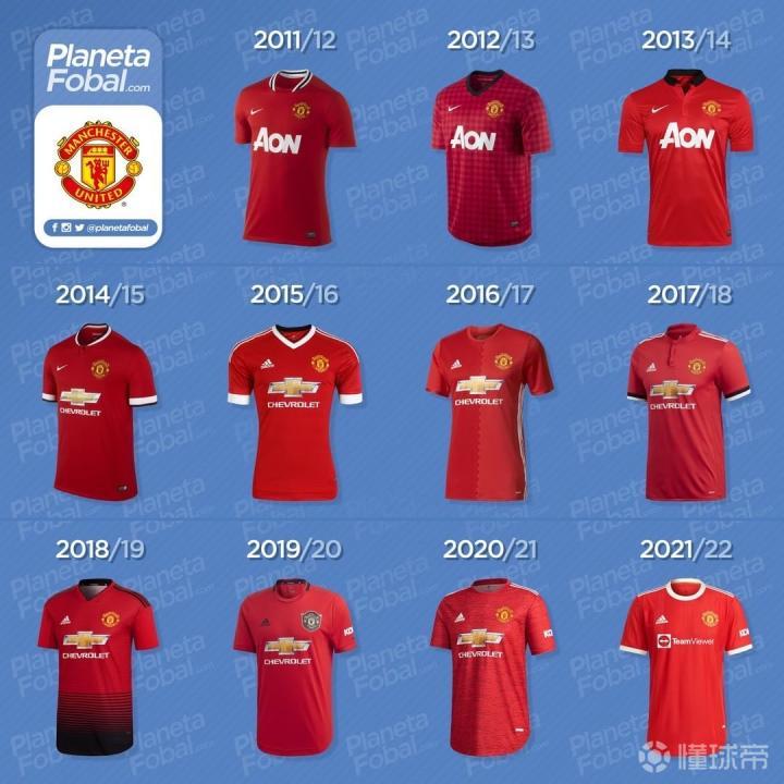 2011-2022赛季,曼联主场球衣演变史,你最...