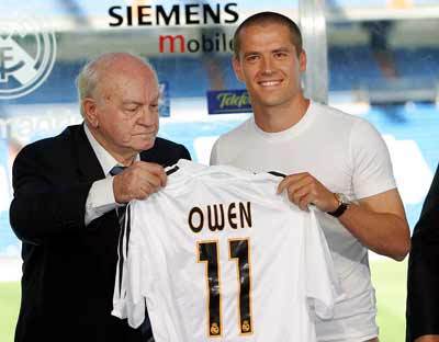 2004年8月,欧文离开安菲尔德加盟皇马,转会费一千二百万欧元。在伯纳乌,他接过了迪斯蒂法诺的11号战袍。但是这次转会注定是一次败笔,整个赛季欧文竟没有一次首发,在劳尔和罗纳尔多身边已经压力倍增,谁曾想巴普蒂斯塔和罗比尼奥也抢占了金童的出场时间。伯纳乌是足球的殿堂,白色是神圣的纯洁,但是对于欧文,伯纳乌无疑是伤心之地,皇马的白衣无疑是他迷茫的前路。