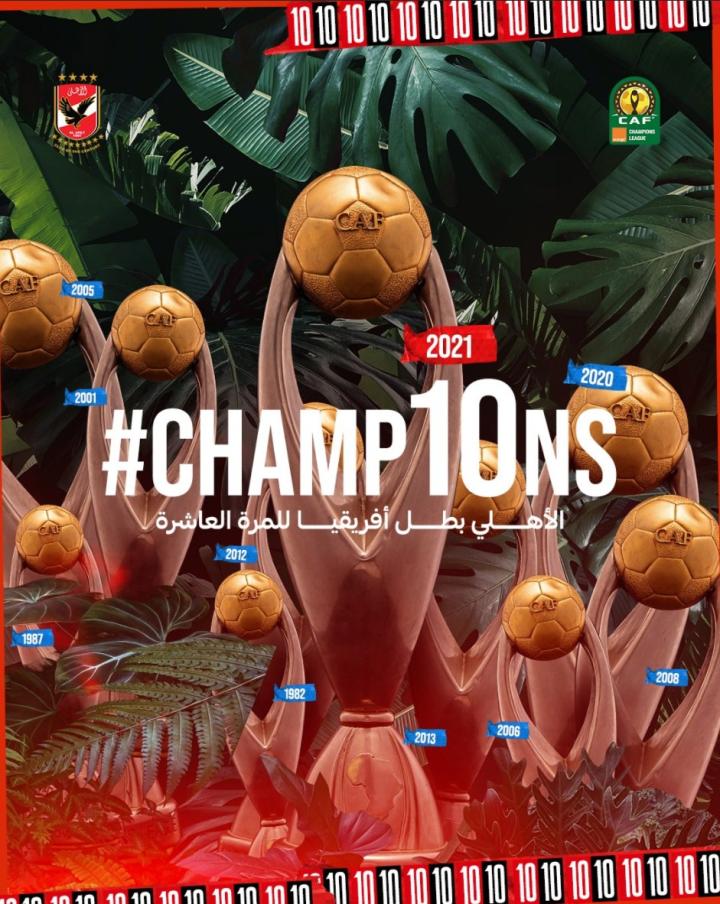 在3-0击败凯萨酋长后,开罗国民再一次完成了卫冕。第10次夺冠的开罗国民是非洲冠军联赛夺冠次数最多的球队,排名第二的是5次夺冠的扎马雷克体育和马泽姆贝。