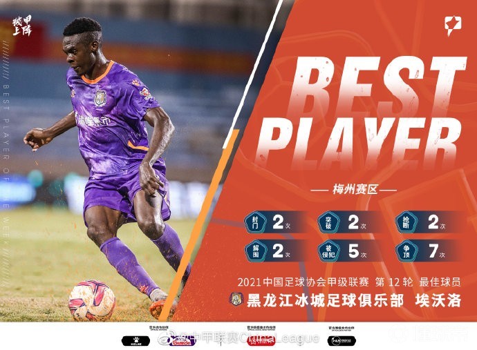 在梅州赛区,黑龙江冰城的埃沃洛虽然没有进球,但2次射门、2次突破、2次抢断、7次争顶和5次被侵犯,足够证明价值。
