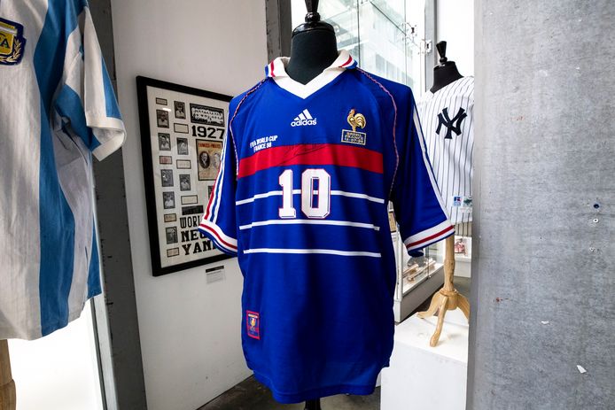 其中最引人注目的藏品之一是齐达内的球衣,由球员本人签名,来自1998年法国和巴西之间的世界杯决赛。