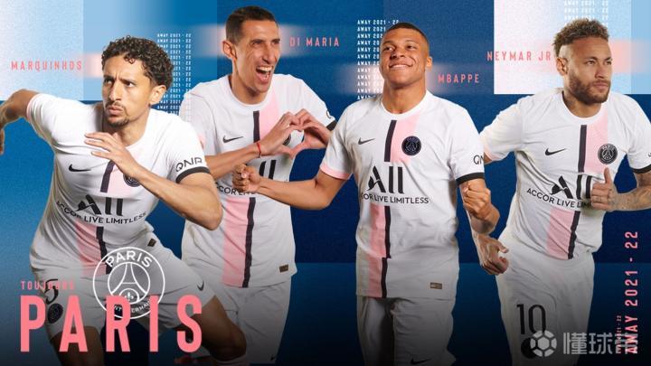 巴黎圣日耳曼俱乐部官方发布了他们和耐克推出的2021-22赛季客场球衣。