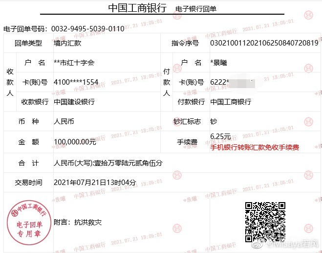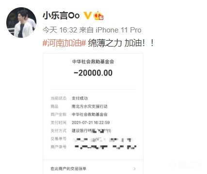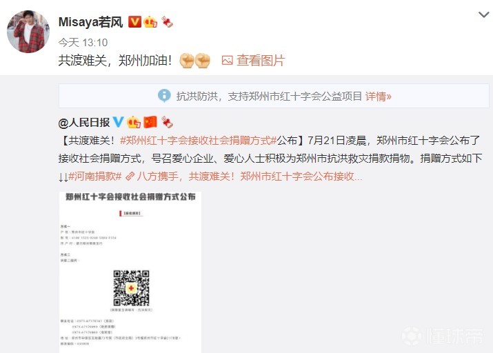WE名宿若风为郑州捐款10万元:共渡难关,郑州加油!