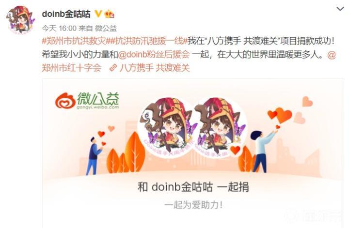 FPX中单Doinb为河南捐款5万元。