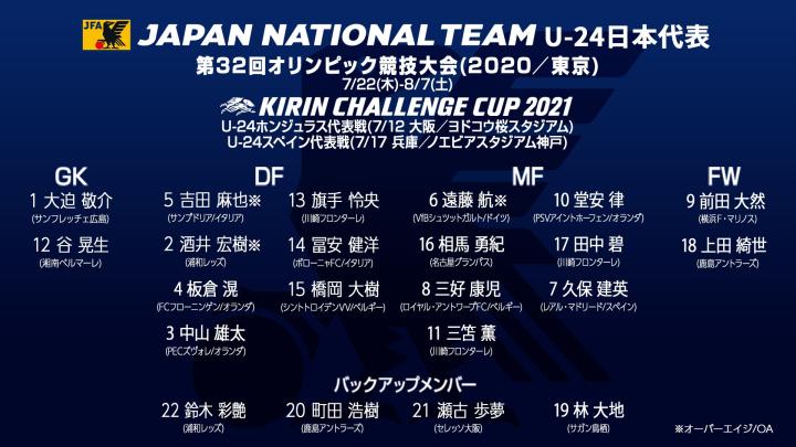 东京奥运男足16队大名单汇总,小组赛首轮今日全面打响