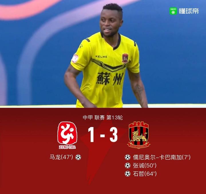 北京时间7月22日16:30中甲第13轮淄博蹴鞠迎战苏州东吴,上半场比赛卡巴南加闪击发难。下半场刚开场马龙头球将比分扳平,然而仅仅两分钟后张诚任意球直接破门再次取得领先。随后不久石哲几乎在同样位置复刻了张诚的进球。最终苏州东吴3-1战胜淄博蹴鞠。