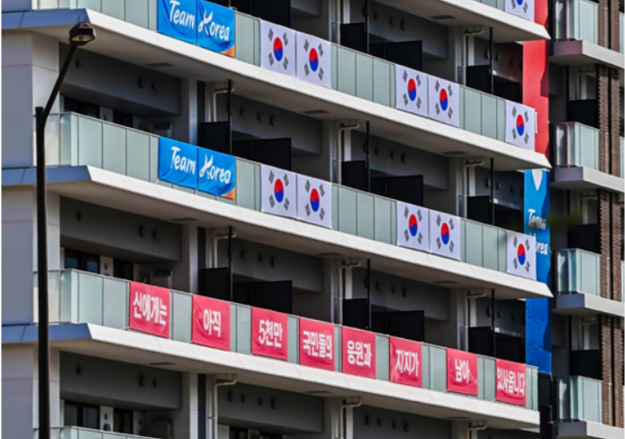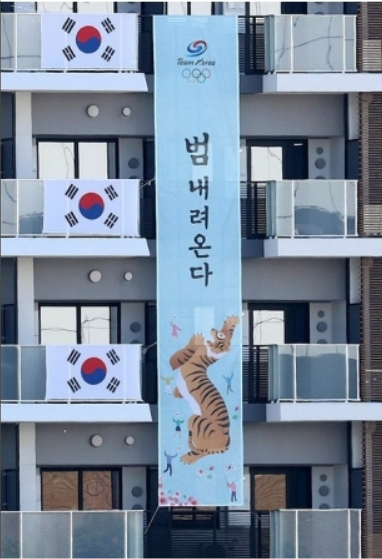 自韩国代表团抵达日本之后,双方的“战争”就打响了。韩国代表队入住奥运村后在他们住的楼层外面,挂了一条鲜红的横幅,写着“臣还有5千万国民声援和支持”,直接让日本网友心态爆炸。