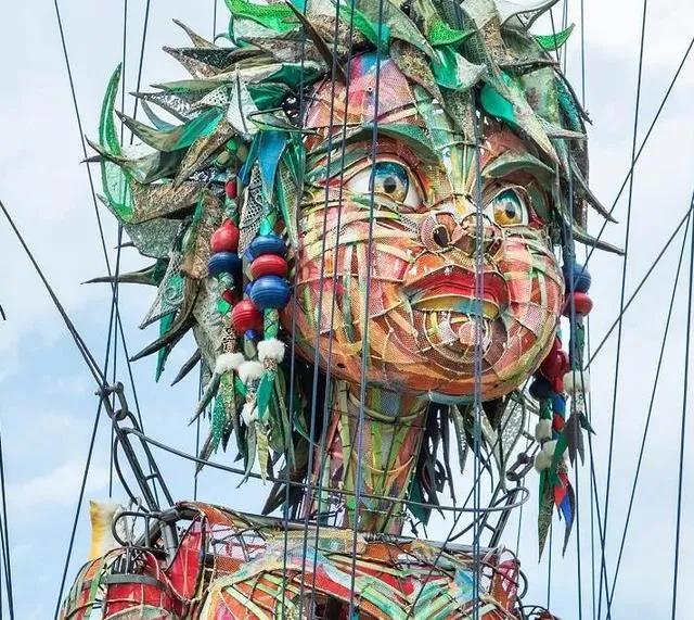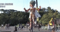 本以为这已经很惊悚了,但只有你想不到,没有日本人做不到的事情,他们又搞了个长得很像垃圾兽的高达10米的巨型提线木偶,人类可以用线操纵的那种。