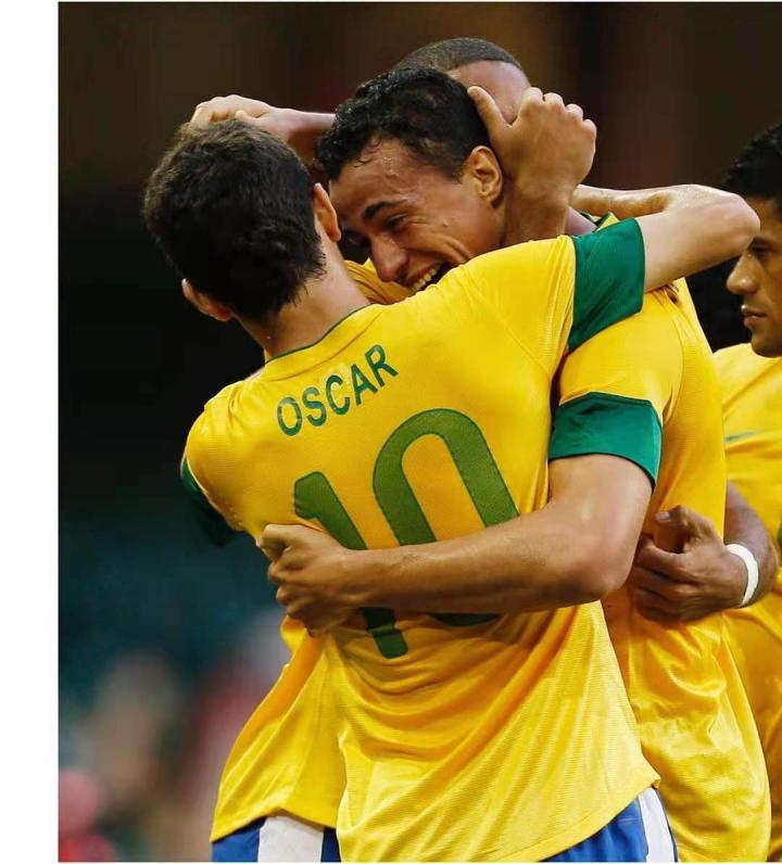 巴西队新晋10号球员奥斯卡,搭档内马尔、胡尔克、蒂亚戈-席尔瓦、马塞洛等出战奥运会。