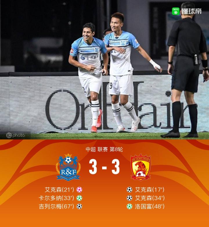 广州城3-3广州,洛国富读秒绝杀被吹,艾克森双响+乌龙