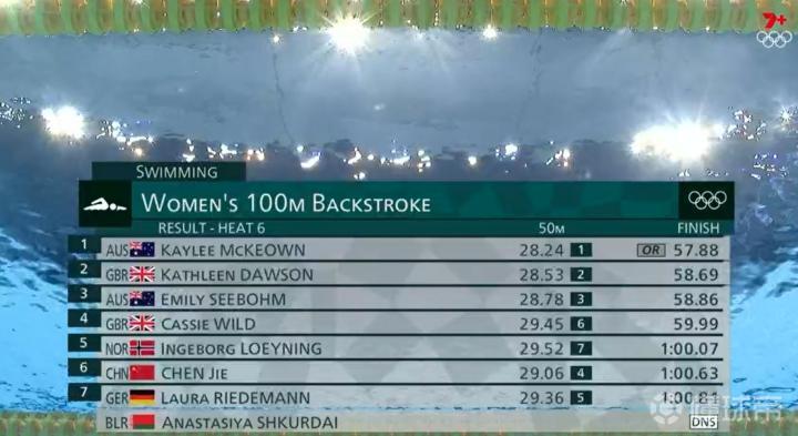 最后在第6小组预赛中,澳大利亚名将、世界纪录保持者凯莉-麦基翁游出了57秒88!第三次打破了奥运纪录!