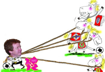 从2006年英国拿到举办权开始,连续三任首相都希望能成功组建英国男足参加伦敦奥运。最后他们还请来国际足联主席布拉特,游说其他三个足协配合。
