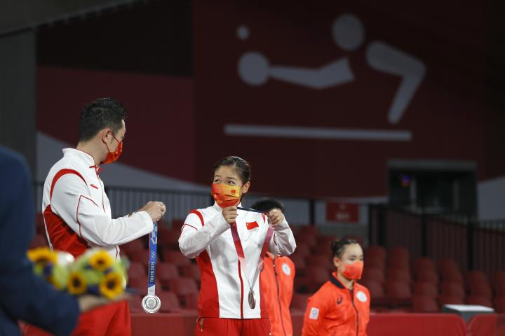 因为这5年的付出,尤其对于这两名老将来讲,其实是复出了很多很多。然后他们能站在奥运会的赛场上,其实就是已经是胜利者了。还是希望大家能够多给他们一些掌声吧!多给他们一些鼓励。