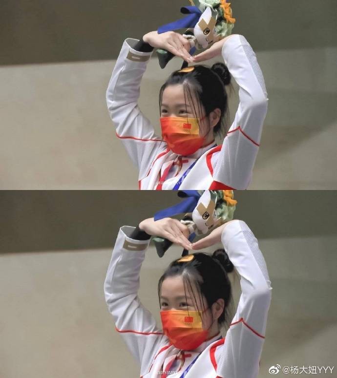 杨倩晒自己比心的照片:谢谢大家的支持呀,我会继续努力哒