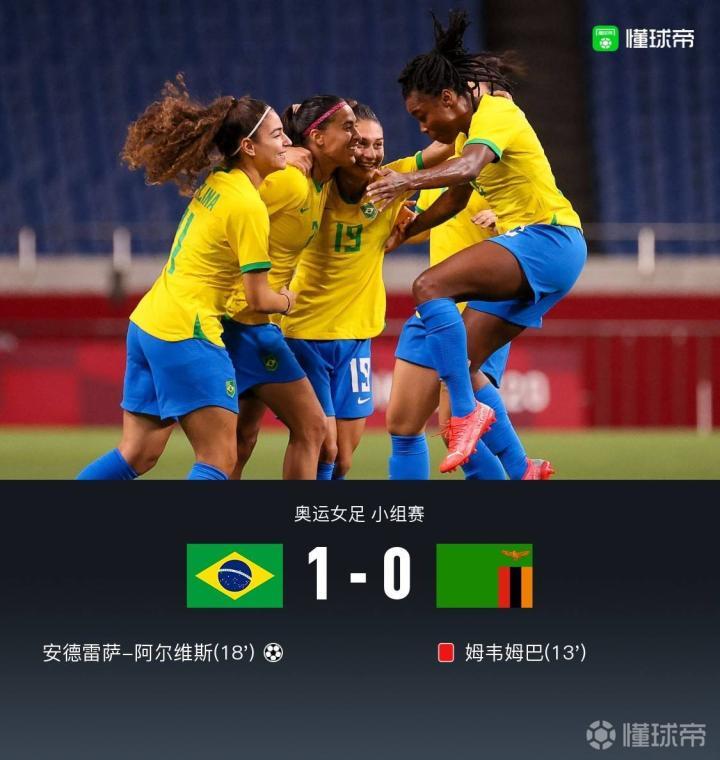 巴西女足1-0十人赞比亚女足顺利出线,安德雷萨任意球制胜