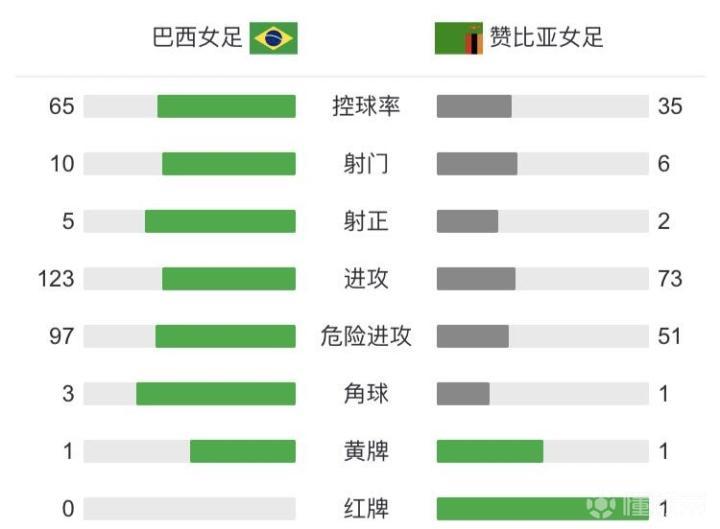 最终全场比赛结束,巴西女足1-0赞比亚女足。
