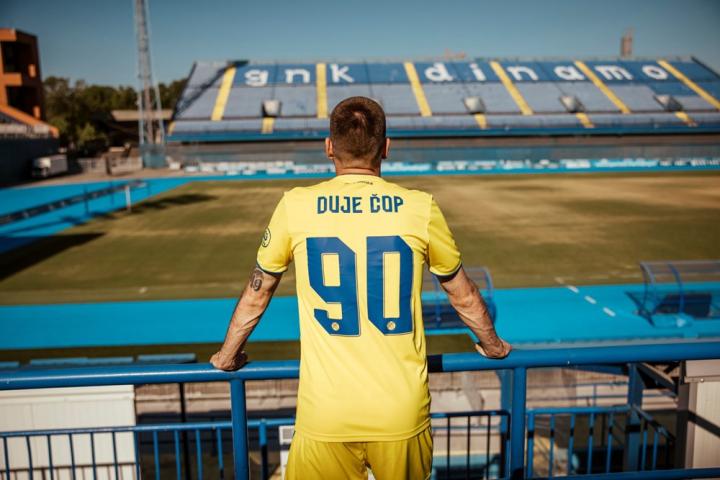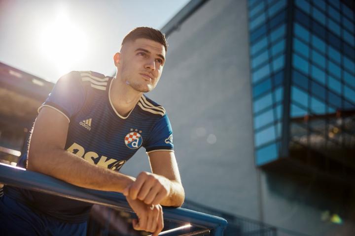 身着新球衣的萨格勒布迪纳摩球员在球队主场马克西米尔体育场(Stadion Maksimir)拍摄宣传照。主场球衣以传统的深蓝色,正面装饰富有动感的深色横纹,衣领、袖口以及肩膀上的阿迪达斯胜利三条纹均带有金色装饰,这一颇具吸引力的外观势必会让球迷们感到满意。