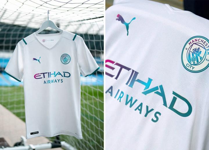 曼城2021/22赛季客场球衣采用特殊的Dope Dye制造工艺打造,从而减少对水资源的消耗,并向俱乐部全球慈善计划——城民关怀(Cityzens Giving)致敬。该计划利用足球运动提升全球对安全用水的认识与了解。这件引人注目的新赛季客场球衣以水滴为设计灵感,球衣上的俱乐部徽章、PUMA Logo以及球衣广告均幻彩配色,如同光线穿透水滴的视觉效果。