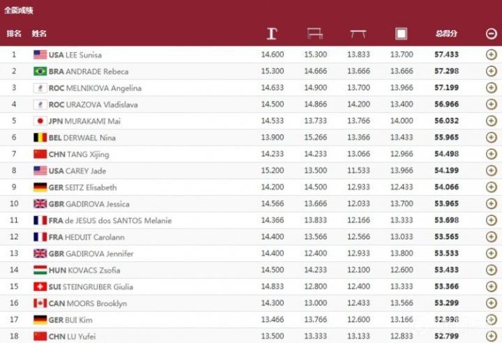 7月29日晚,东京奥运竞技体操女子全能赛圆满落幕,两位中国选手唐茜靖与芦玉菲分别取得第7、第18名。