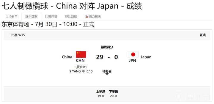 29-0!中国7人制橄榄球女队击败日本取得奥运首胜大吴爱看球 @懂球帝2021-07-30 09:49东京奥运会女子7人制橄榄球分组循环赛C组继续在东京体育场进行,中国队29-0完胜日本队取得奥运首胜。本场比赛中国7人制橄榄球女队展现实力,在上半场就取得14-0的领先,随后在下半场稳扎稳打,最终29-0完胜日本。这场比赛对于中国7人制橄榄球女队是至关重要的一场胜利,中国队目前一胜两负。展开更多