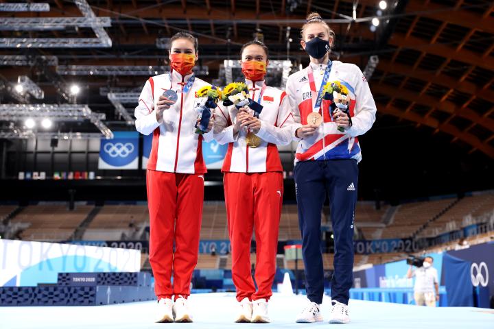 在今天结束的东京奥运会女子蹦床决赛中,中国两位选手朱雪莹和刘灵玲包揽金银牌,赛后,前蹦床奥运冠军何雯娜发文祝贺。