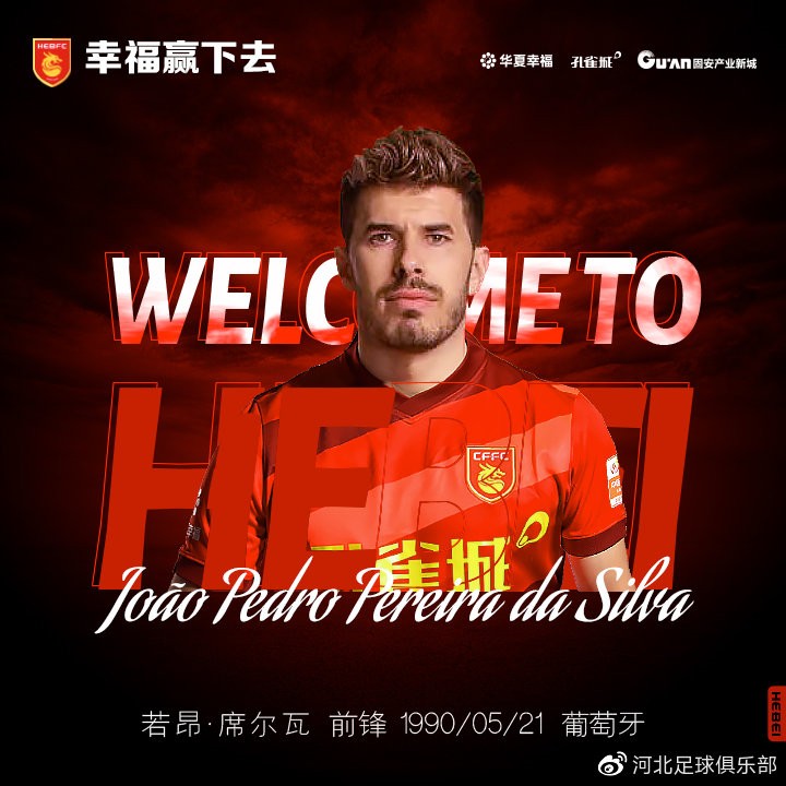 经与球员本人协商达成一致,即日起,若昂·席尔瓦(João Pedro Pereira da Silva)正式加盟河北足球俱乐部。
