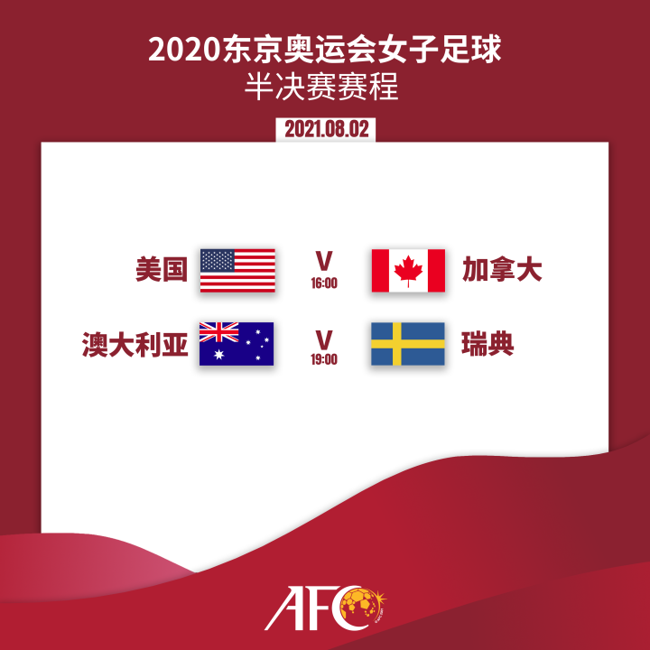 东京奥运会女足四强对阵出炉!澳大利亚女足迎战瑞典...亚足联 @懂球帝2021-07-30 23:05东京奥运会女足四强对阵出炉! 澳大利亚女足迎战瑞典女足,科尔和布莱克斯特纽斯正面对决。 美国女足对阵加拿大女足,两队上演北美德比。 小组赛中,澳大利亚女足曾不敌瑞典女足,此番再度交锋,她们能否拿到一场胜利?展开更多