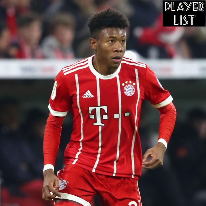 (2017-2018赛季的拜仁慕尼黑后防线) 4.聚勒(德国) 现效力于拜仁慕尼黑 5.胡梅尔斯(德国) 现效力于多特蒙德 13.拉菲尼亚(巴西) 现效力于格雷米奥 14.贝尔纳特(西班牙) 现效力于巴黎圣日耳曼 15.拉尔斯-迈(德国) 现效力于云达不莱梅 17.热罗姆-博阿滕(德国) 现为自由球员 27.阿拉巴(奥地利) 现效力于皇家马德里 32.基米希(德国) 现效力于拜仁慕尼黑 34.马尔科-弗里德尔(奥地利) 现效力于云达不莱梅