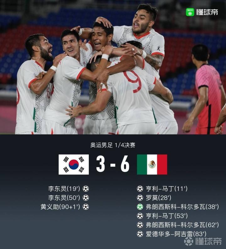 墨西哥国奥6-3韩国国奥晋级四强,亨利-马丁、科尔多瓦双响