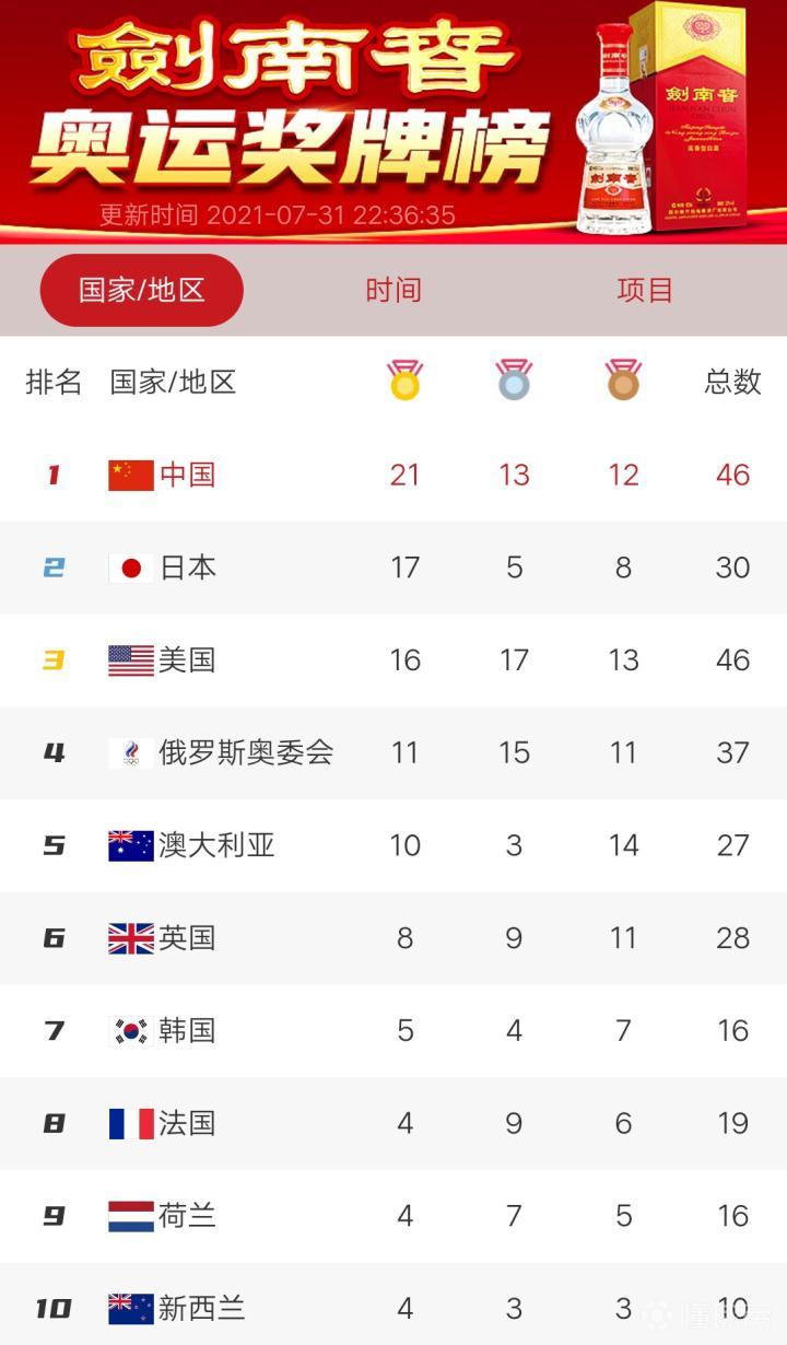 大家好,欢迎收看8月1日的懂球帝奥运早报。在昨天的比赛中,中国代表团共收获2金3银1铜,以21金13银12铜继续位居奖牌榜首位。