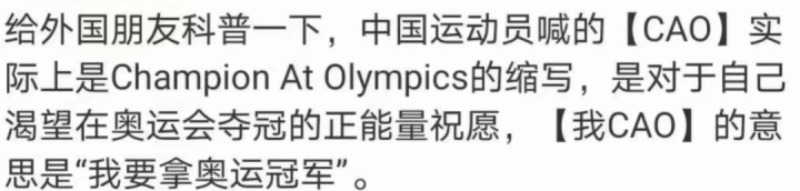 奥运健儿也是人,他们也会在最无助或是最亢奋的时候,脱口而出那一句最国之纯粹的WOCAO,这太正常不过了,总不能让他们大喊旺旺吧。