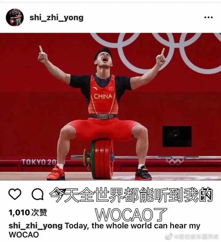 赛后,他坐在杠铃上拍了张照,分享至个人instagram,配文极具bking气息:今天,全世界都能听到我的WOCAO了。
