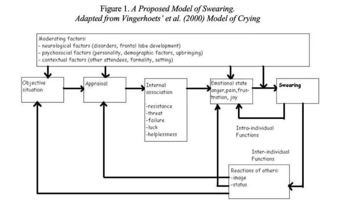 更有研究者指出研究者Adrianus Vingerhoets等人(2013)指出,人们之所以说脏话,往往是由于受到了神经(大脑前额发育问题、精神紊乱等)、心理(人格特质、压力等)或环境(人、场景等)因素的影响,从而引起情绪唤起,应激水平提高。