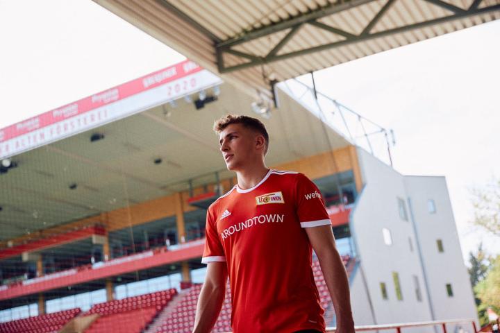 在即将到来的新赛季,柏林联盟球员将会穿着这件拥有传统色彩的全新主场球衣出现在老林务所畔球场(Stadion An der Alten Försterei)上。球衣衣领与袖口均加入白色装饰,同时新球衣上还带有两个值得关注的细节设计:一个是出现在球衣上的红色细竖条纹,另外一个则是出现在球衣背后衣领下方的“U·N·V·E·U”字样。