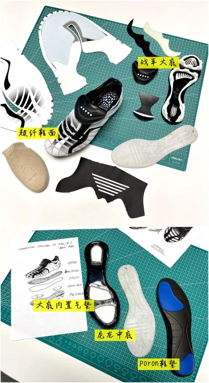 我们仔细观察,会发现李铁的铁系列,有点像一款耐克球鞋,那就是耐克的t901代,虽然两款鞋看似没有半点关系,甚至在设计方面完全不同,901战车使用的侧系鞋带设计,超纤鞋面,铁系列则是正系鞋带,袋鼠皮鞋面。但看一下细节,就会发现两款鞋的鞋舌都是一样的三角形鞋舌,铁系列的鞋底更是和耐克的战车鞋底非常相似。其实这一点都不奇怪,901战车是李铁签约李宁之前最喜欢使用的球鞋,李铁对他的鞋底设计非常满意,称战车鞋底对他的跑动帮助非常大。而当时的李宁在足球鞋设计方面根本没有任何经验,设计的鞋底一直无法达到李铁的要求,所以最终采用了和战车鞋底类似的设计才达到了理想的效果。