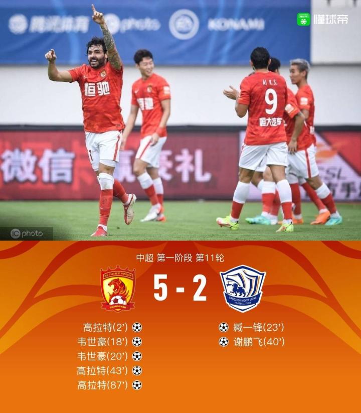 广州5-2沧州,高拉特帽子戏法,韦世豪双响,臧一锋传射