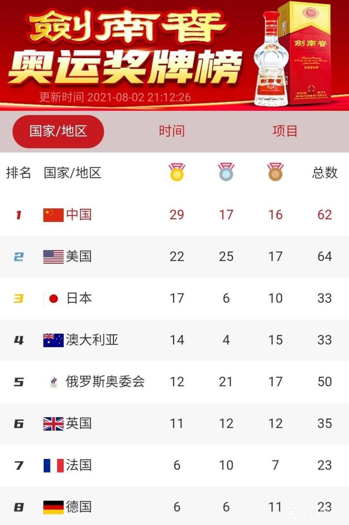 剑南春奥运早报:中国5金3银3铜大丰收,金牌数今天破30?